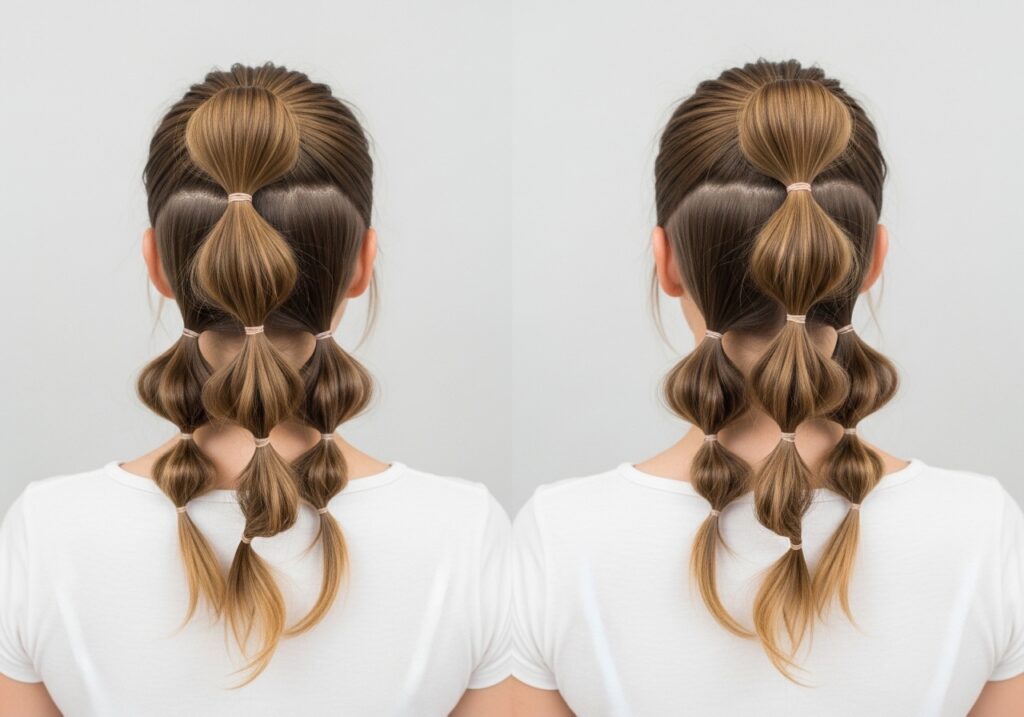 Bubble ponytails are one of the most adorable and playful cute hairstyles for girls right now. Section your ponytail into multiple parts with small elastics and gently puff each section outward for that bubbly, voluminous look. It works on all hair lengths and looks fun, fresh, and incredibly sweet.