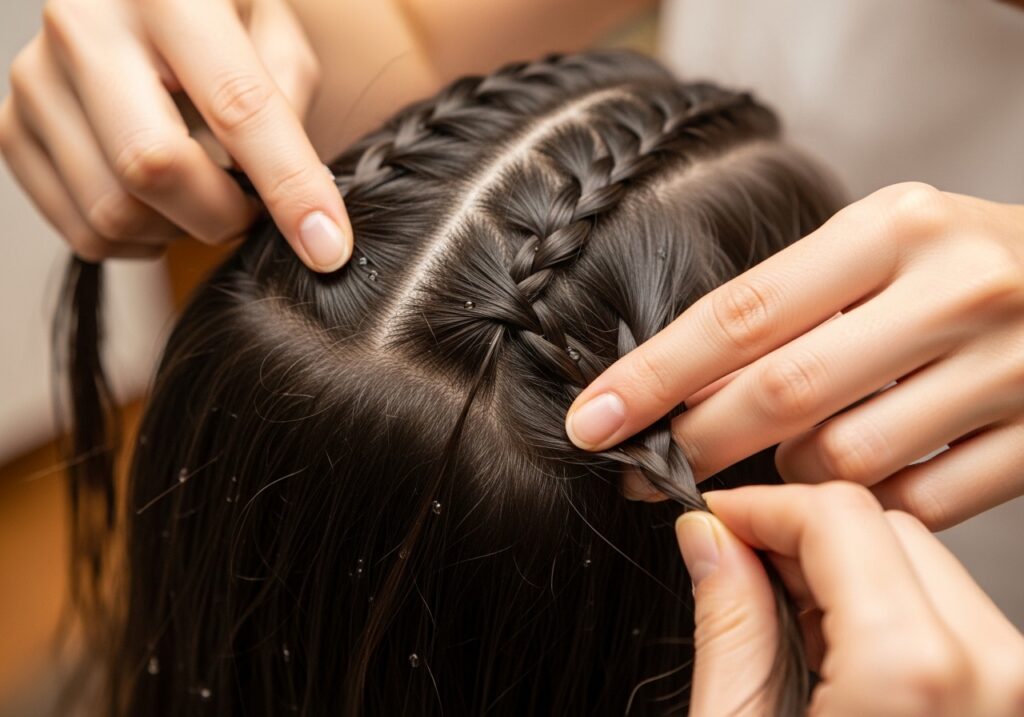 - Make Braids Look Thicker: Gently tug on each section of your braid after finishing it. This technique is called pancaking and it makes every braid look fuller and more voluminous instantly.