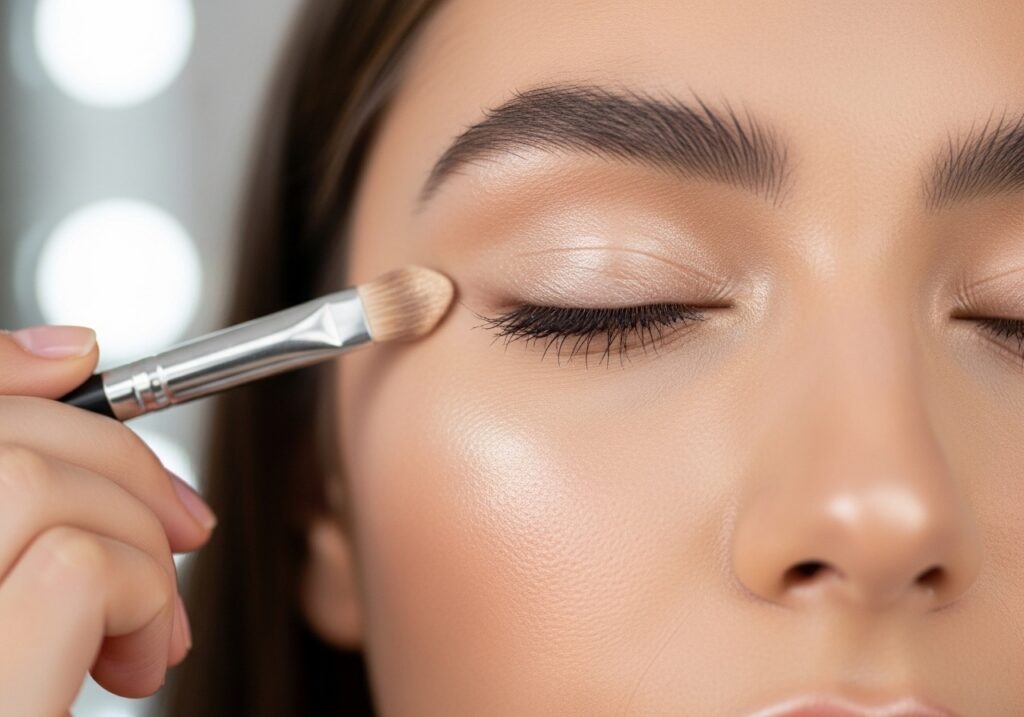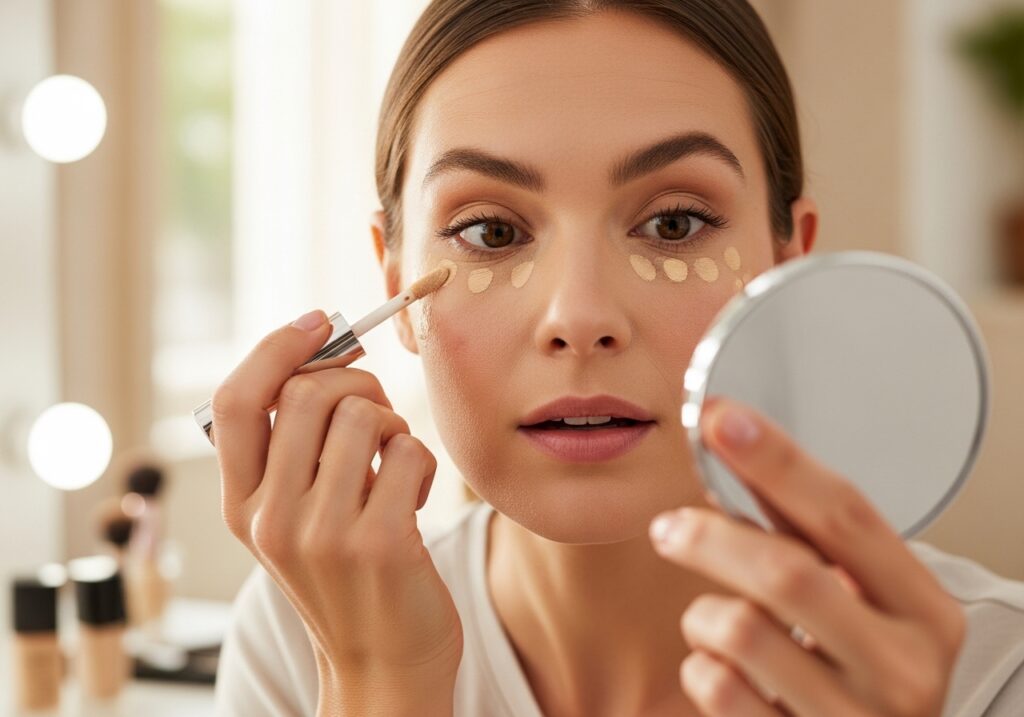 Concealing dark circles is essential for looking awake and refreshed. Apply a creamy concealer under your eyes, blending it gently into the skin. Highlight the inner corners of your eyes with a light shimmer to further brighten up your face.
