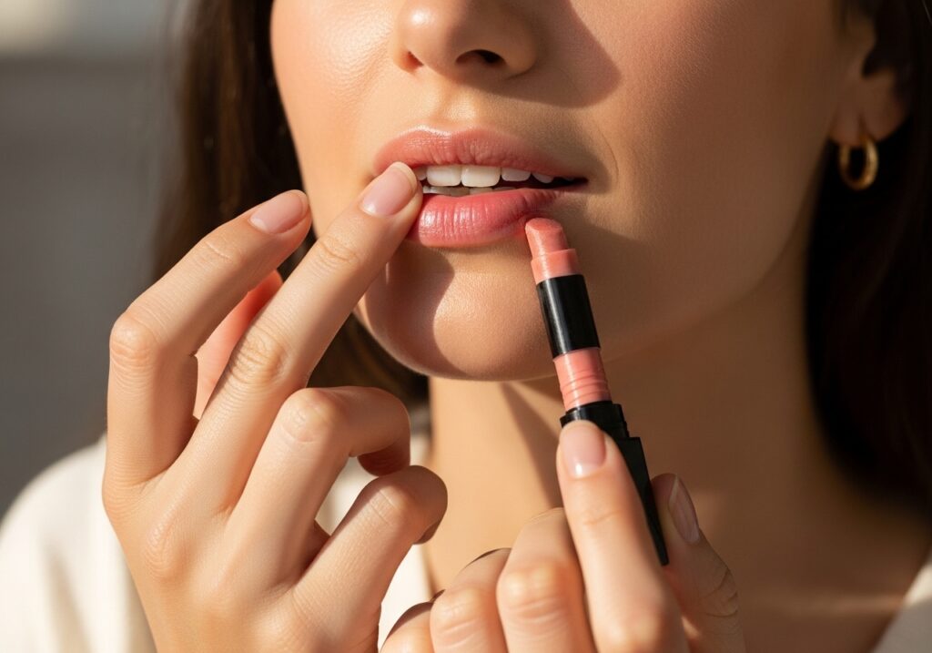 For a natural pop of color, choose a tinted lip balm or lip gloss in a soft pink or peach shade. This will give your lips a healthy, hydrated look while still keeping the overall makeup simple and fresh.